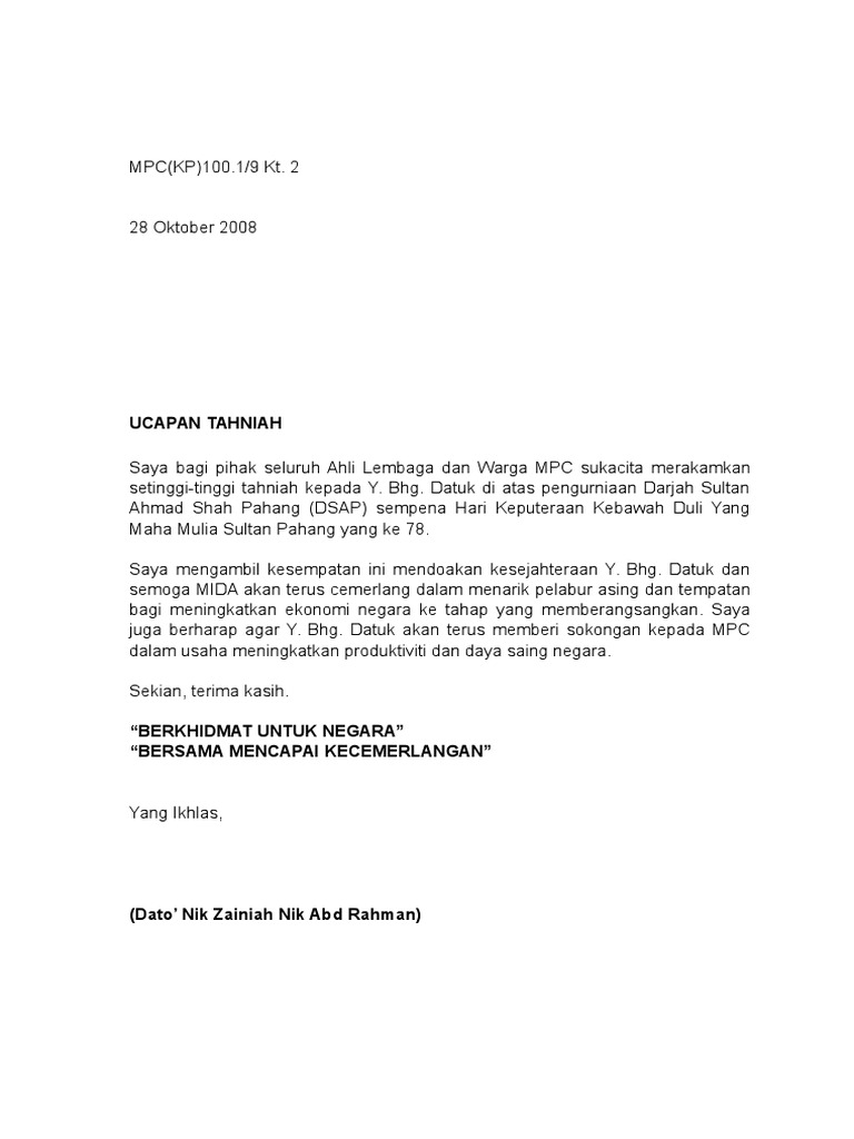 Contoh Surat Selamat Tahniah. Alhamdulillah Semoga terus mencipta.